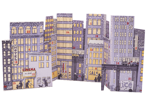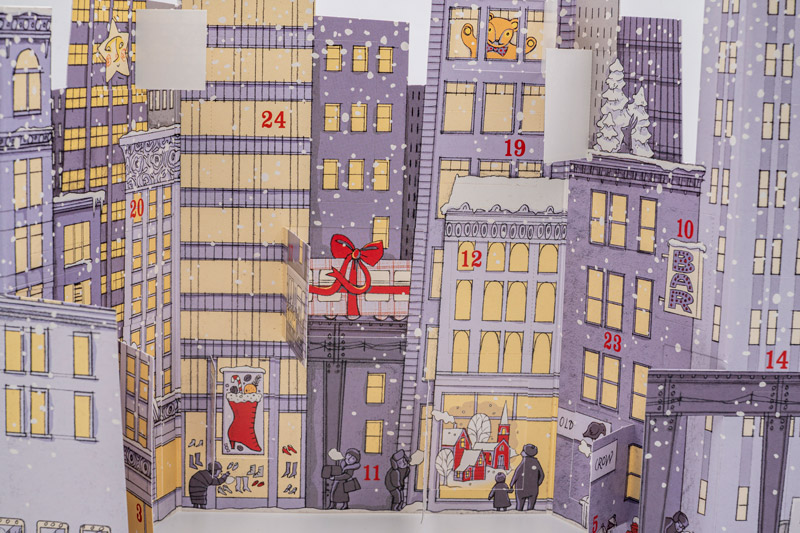 Es ist Abend, es schneit, aber noch sieht es nicht so weihnachtlich in dieser Großstadt aus. Dies wird sich aber im Laufe der Zeit ändern. Nach 24 Türchen ist auch diese kleine Skyline, angelegt an Chicago, in der Hand von Weihnacht.